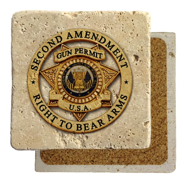 This is a single Travertine Coaster showing support for the 2ND Amendment Right to Bear Arms.