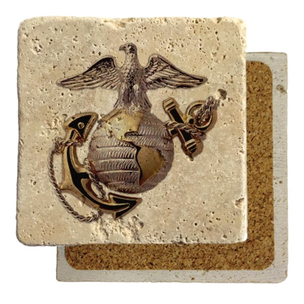 This custom-designed coaster with cork backing features the Officer Eagle, Globe and Anchor. Available in travertine, this 4″ x 4″ coaster makes for a great gift or decorative item that will protect your furniture surfaces while sending the message that you are proud to be a marine and proud of what you stand for.