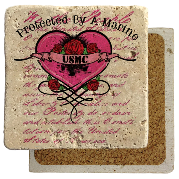 Showcase your love of service or present a gift of gratitude to the Marine in your life with this 4″ x 4″ coaster on travertine tile, featuring our “salty” coaster. Always feel protected when your safe haven is “Protected by a Marine”.